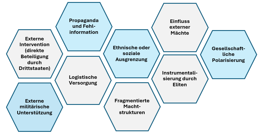 → in Myanmar oder Südsudan führen tiefe Spaltungen zu wiederkehrender Gewalt. - Einfluss externer Mächte